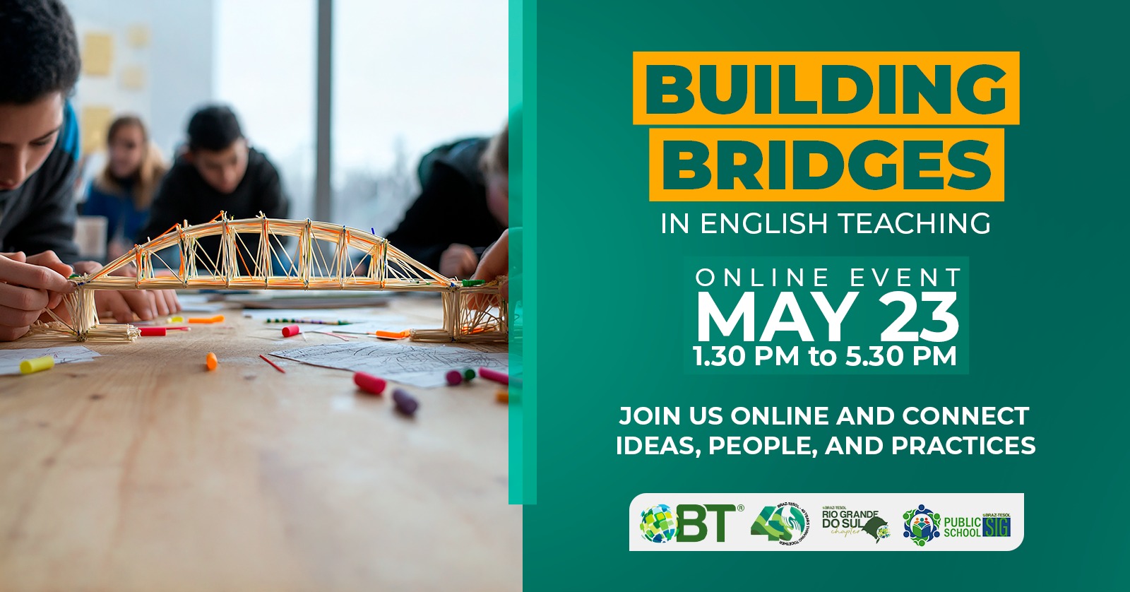 The ONE DAY EVENT – BRAZ-TESOL Chapter RS and Public School SIG, themed Building Bridges in English Teaching, offers a day of connection and dialogue among teachers, researchers, and professionals in the field, aiming to strengthen relationships and expand possibilities in English language education. The program will explore topics such as inclusion in English teaching, professional pathways and opportunities, as well as teaching practices that help build bridges across diverse educational contexts.