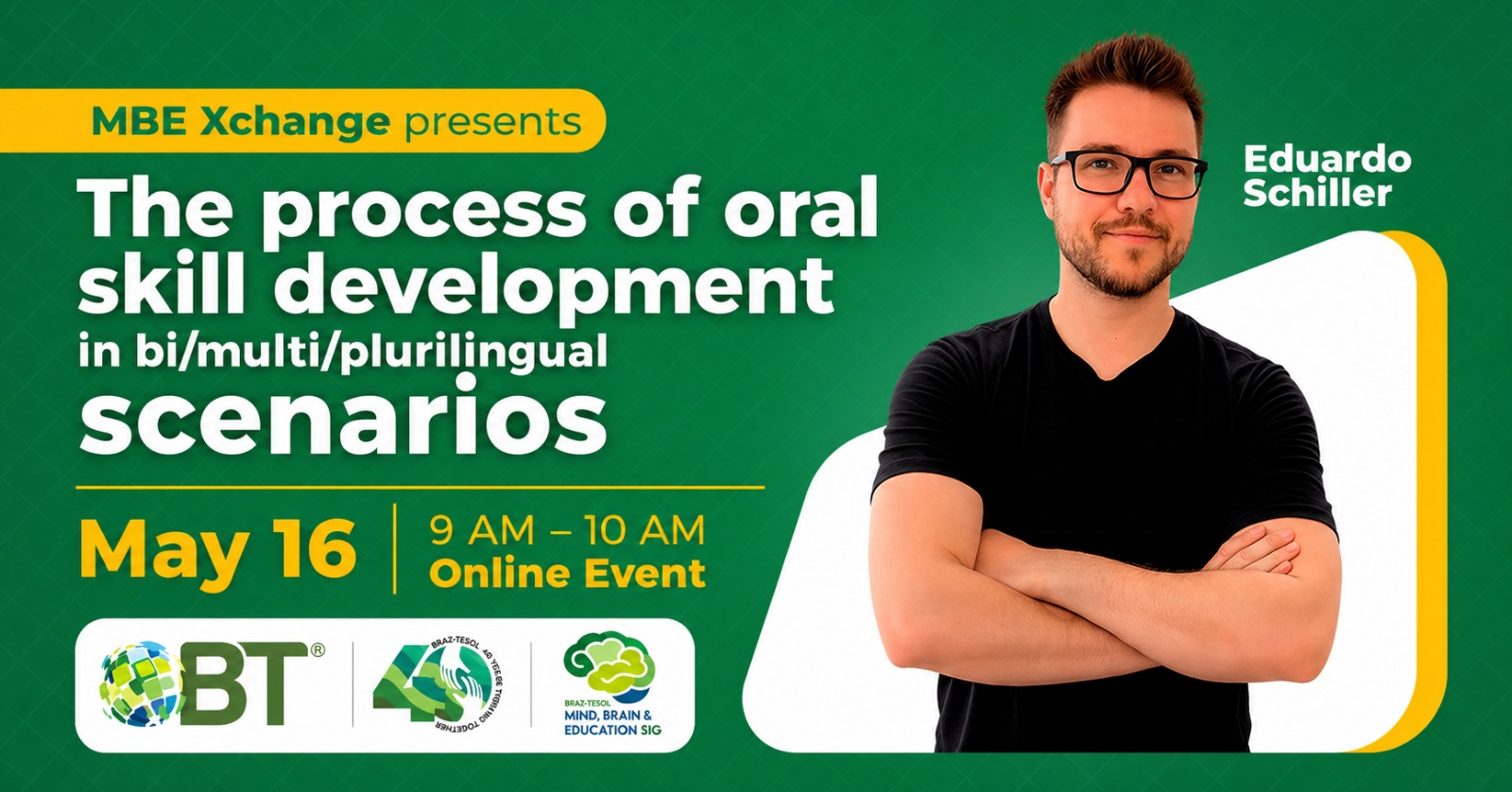 In this brand-new recurring event by BRAZ-TESOL’s MBE SIG, MBE Xchange, we are honored to welcome Eduardo Schiller to discuss, answer questions, and exchange experiences related to classroom practices that prioritize spoken discourse.